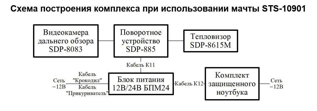 - Схема построения комплекса при использовании мачты STS-10903 и проводном подключении комплекта защищенного ноутбука